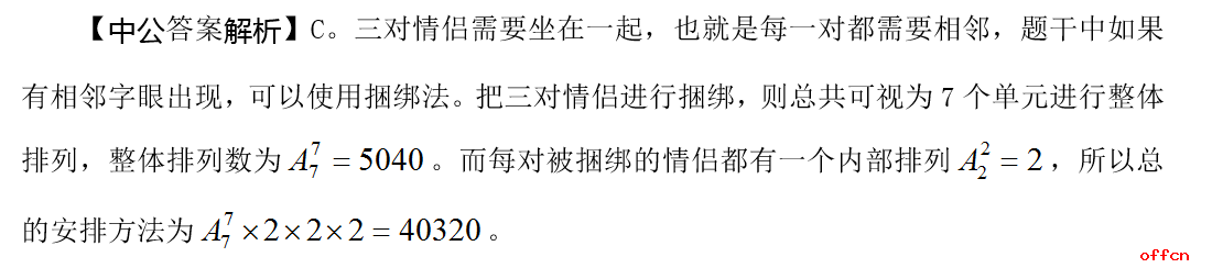 例2:10个人一起看电影,他们的票号恰好相连,已知这10人中有3对情侣要求坐在一起,座位有多少种不同的安排方法?