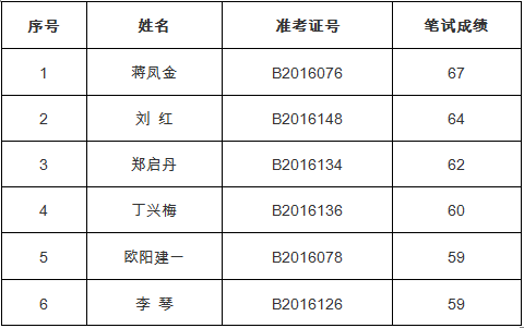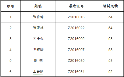 根据笔试成绩从高分到低分顺序,按照1:3 比例确定参加进入面试人员,名单如下: