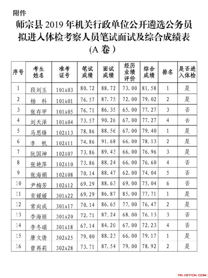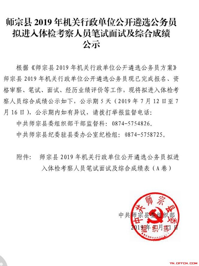 原标题:师宗县2019年机关行政单位公开遴选公务员拟进入体检考察人员笔试面试及综合成绩公示