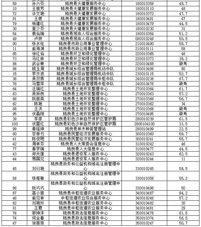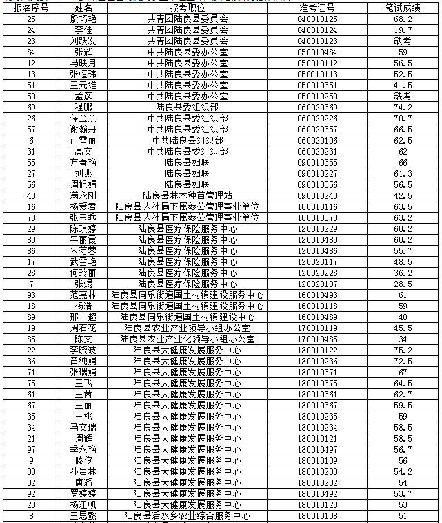原标题:陆良县2019年公开遴选选调机关事业单位工作人员笔试成绩公告