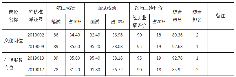 按照《西双版纳州司法局2019年公开遴选公务员公告》有关规定,现对笔试、面试、经历业绩评价综合成绩进行公告。