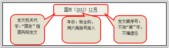发文字号由发文机关代字、年份、发文顺序号组成。联合行文时,使用主办机关的发文字号。