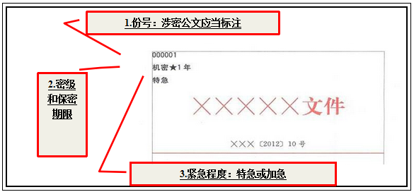 《条例》规定:“涉密公文应当根据涉密程度分别标注绝密、机密、秘密和保密期限。”