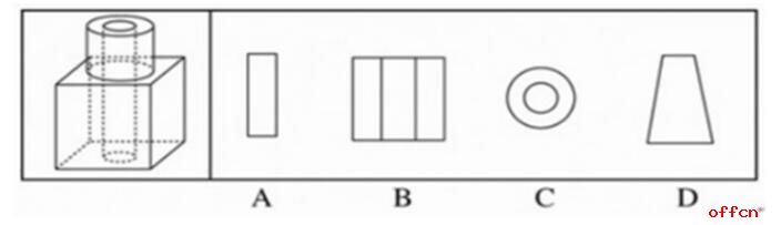 【中公解析】A选项竖截下面正方体不碰触中间部分可以截得;C选项横截上半部分的圆柱体即可;D选项截下面的正方体即可;B选项的图形只能竖直截,但是竖直截的情况下上面少了一部分,所以B选项是不能由题干截出的。故正确答案为B。