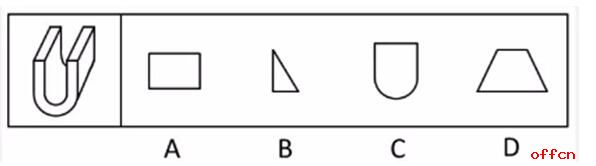 【中公解析】本题较为简单,一眼就可以发现从靠近“U”型立体图形的边缘截开即为A选项,本题BD比较容易排除,由于题干的立方体呈“U”型,因此部分考生误选了C,但一定要注意“U”的中间是空心而不是实心,因此C是不成立的。