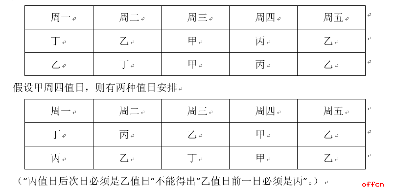 ②如果甲周二值日,那么乙只在周三或者周四值日