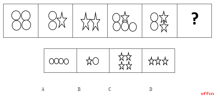 我们将这个题目进行换算,我们可以试着将这样换算,1☆=3O,代入进去看一看规律,换算过后我们算的是O的个数,分别是4、5、6、7、8、(9)个O,那我们看一下选项,哪个换算过后是9个O,正好选择D选项。