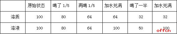 中公解析:由上面的表格可以看出,只要一开始设这瓶果汁的溶液为100,经过简单计算可以得出最终浓度为32%。