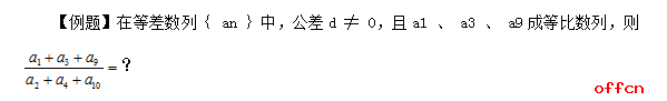 中公解析:由题中可知数列不唯一,所以可以选择一个满足条件的简单数列代替未知量计算,所以可以直接设定a1=1,a3=3,a9=9,符合题目的所有条件:an=n。带入式子进行计算,得到(1+3+9)/(2+4+10)=13/16。