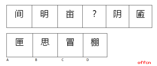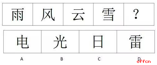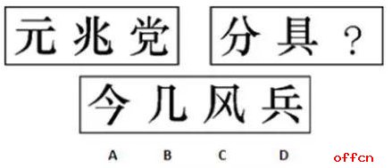 中公解析:本题中汉字的结构分别为半包围、左右、上下、?、左右、半包围,所以问号处应该填入上下结构的汉字,排除A、D,接下来发现B、C的区别在于封闭区间数不同。所以分析题干汉字的封闭区间,分别为2、3、4、?、3、2,所以答案选择含有四个封闭区间的汉字,答案为B